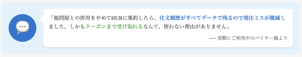 - 既存HUBご利用者様が主な対象: FAX・電話注文や他社問屋との併用から、HUBへの集約を応援
