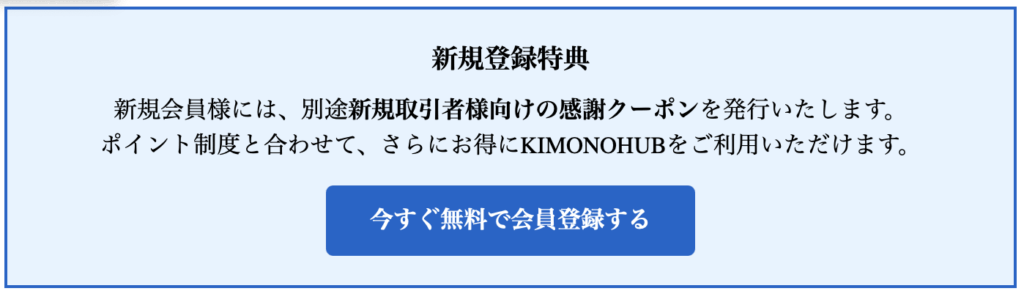 これからKIMONOHUBをご利用になる方も、会員登録後すぐにポイント制度をご利用いただけます。