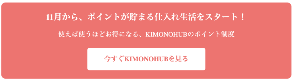 本記事の情報は2025年10月27日時点のものです。ポイント制度の詳細、還元率、キャンペーン内容などは予告なく変更される場合があります。最新情報はKIMONOHUB公式サイト、または営業担当者にご確認ください。