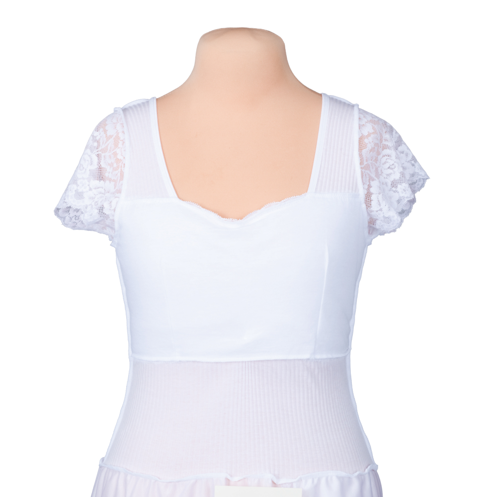 | 素材 | 生地/上身頃(綿65%・ポリエステル35%) スカート部 (ポリエステル100%) 胸・袖レース部分 (ナイロン・ポリウレタン) スカートレース部分 (ナイロン100%) 衿テープ部分 (ナイロン87%・ポリウレタン13%) |