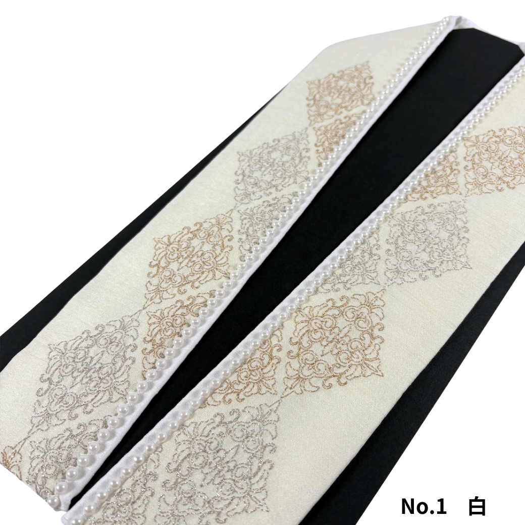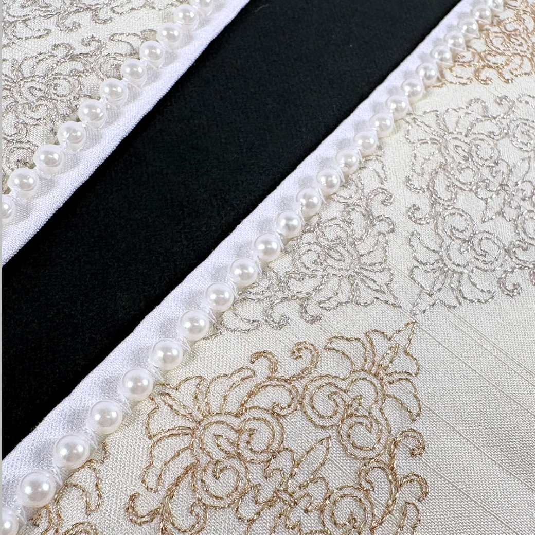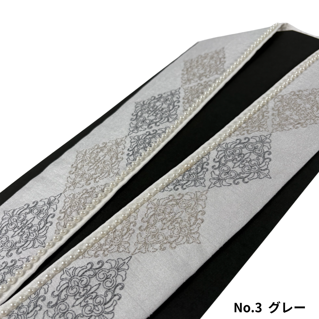 パールの縁取りで、衿元を上品に格上げする重ね衿 衿の縁に並ぶパールと、刺繍が印象的な重ね衿(伊達衿)です。 立体感のあるレース調のモチーフが、さりげなく華やぎを添え、写真映えも◎。 選べる3カラー ・No.1 白 ・No.2 ベージュ ・No.3 グレー おすすめポイント ・パールの縁取りで顔まわりが明るく華やかに ・刺繍もあることで全体が引き締まり、甘すぎない印象に ・レース調モチーフで上品な存在感 ・振袖用で少し変わった商品をお探しの方にはおすすめ コーディネートの「あと一歩」を埋める、使いやすいアクセント重ね衿です。 |