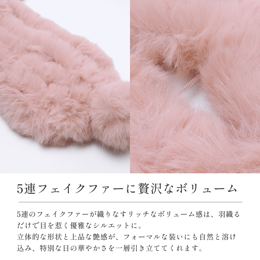 | 商品詳細 | 「ふんわり贅沢なボリューム感。柔らかく包み込む5連フェイクファーショール」 リッチなボリューム感が魅力の5連フェイクファーショール。 柔らかく滑らかな肌触りのフェイクファーを採用し、肌に優しく暖かい仕上がり。 着物にも洋装にも合わせやすいブラック・ホワイト・ピンクの3色展開。 おすすめポイント ・ふんわりとした贅沢なボリューム感で、華やかな印象に・柔らかく暖かなフェイクファーで、快適な着け心地 ・シンプルながら上品なデザインで、様々なスタイルにマッチ ・ブラック・ホワイト・ピンクの3色展開で選びやすい 寒い季節のおしゃれを、暖かくエレガントに仕上げる一枚。 |