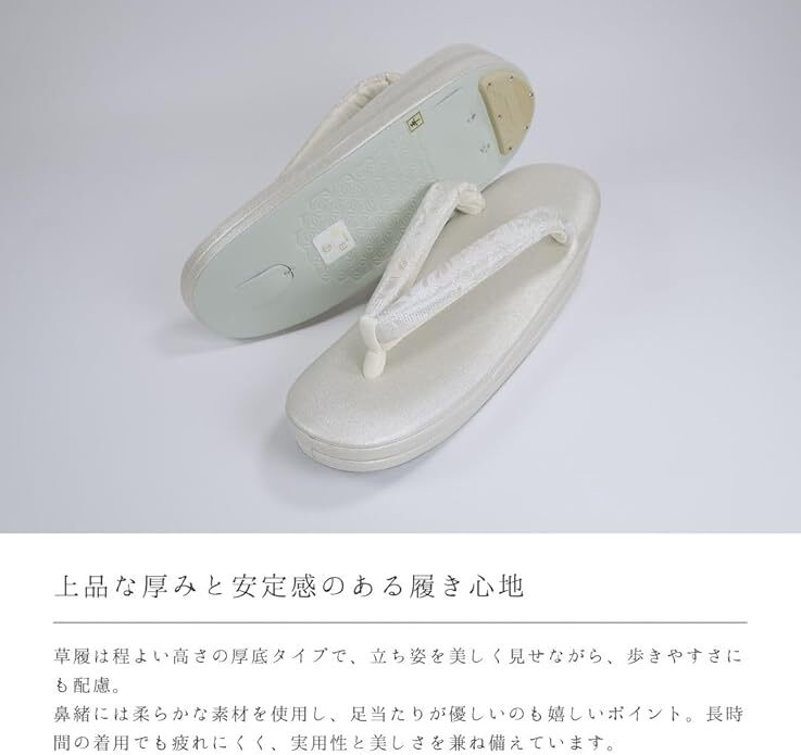 バッグ:正絹袋帯地(口金タイプ) 草履: 〈表面〉ポリウレタン・ポリエステル・綿 〈裏面〉牛革 |